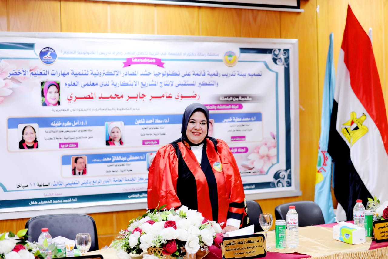 Le secteur des études supérieures de la faculté a organisé la Soutenance publique de la thèse de doctorat soumise par la chercheuse Radwa Amer El-Masry, inscrite en sciences de l'éducation, spécialisée en conception et enseignement des technologies éducatives. Sa thèse porte sur le thème : « Conception d'un environnement de formation numérique basé sur le financement participatif pour développer les compétences en éducation verte et la vision prospective en vue de la réalisation de projets innovants chez les enseignants de sciences. »