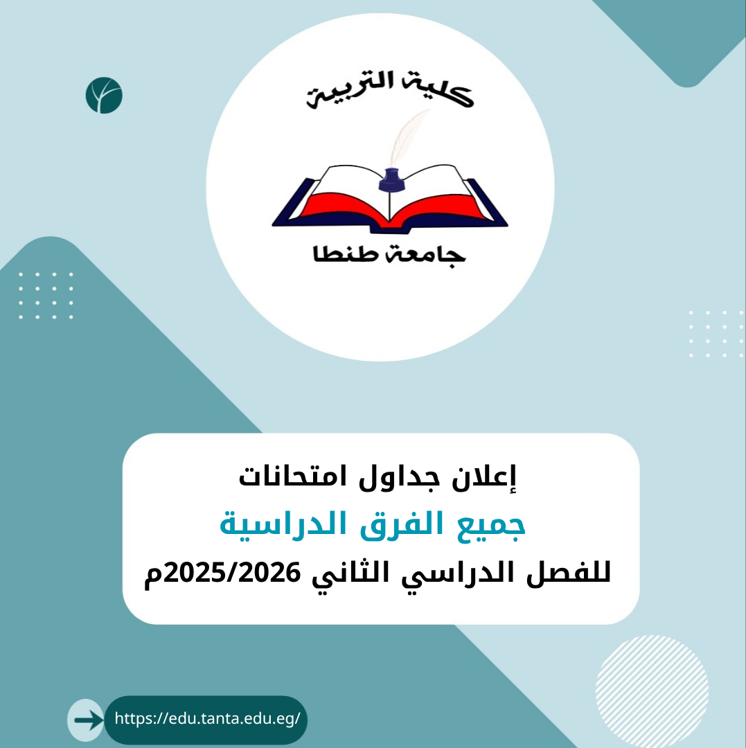 جداول امتحانات جميع الفرق الدراسية للفصل الدراسي الثاني 2025/2026م