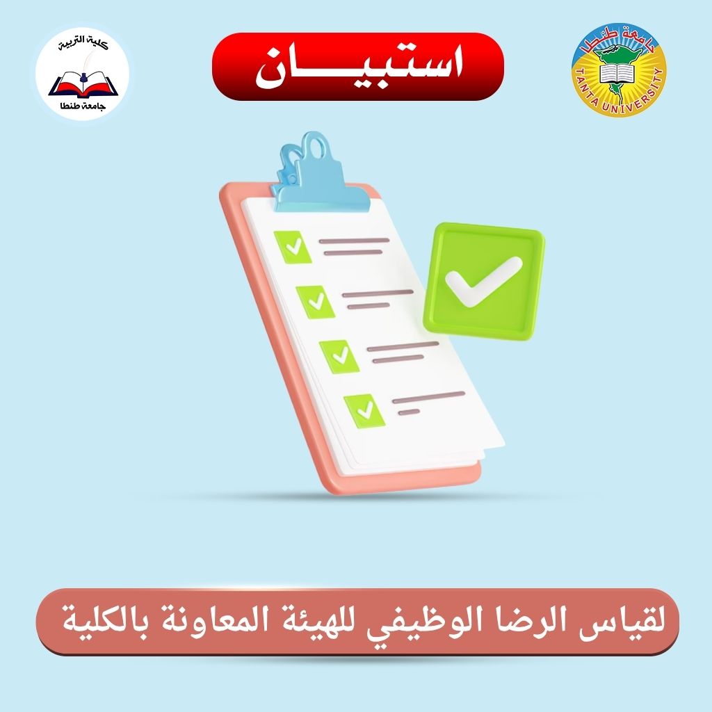 تُعلن كلية التربية بـ جامعة طنطا عن إطلاق استبيان لقياس مستوى الرضا الوظيفي للهيئة المعاونة بمختلف أقسام الكلية، وذلك في إطار حرص الكلية على تحسين بيئة العمل وتعزيز كفاءة الأداء المؤسسي